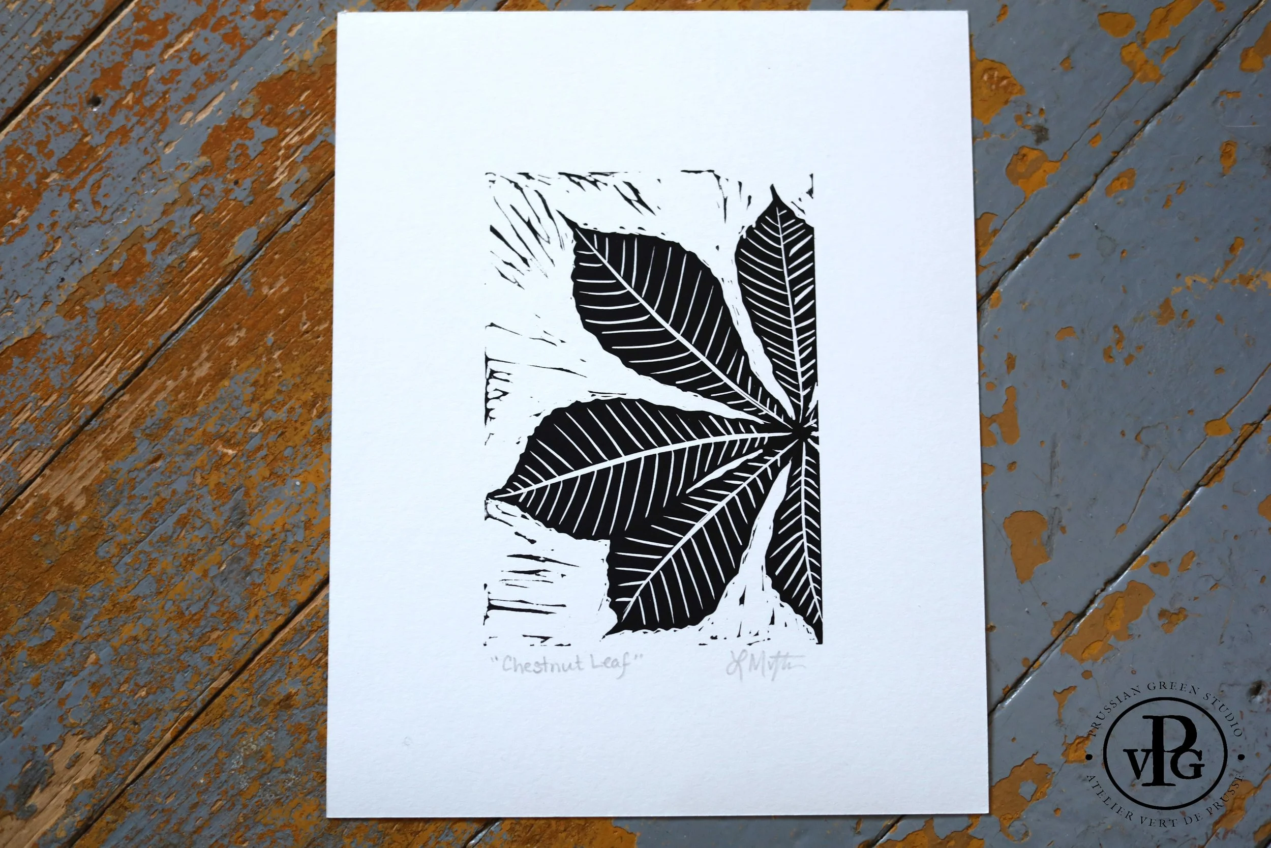 This small print features a chestnut leaf, inspired by the tree in the studio’s garden.